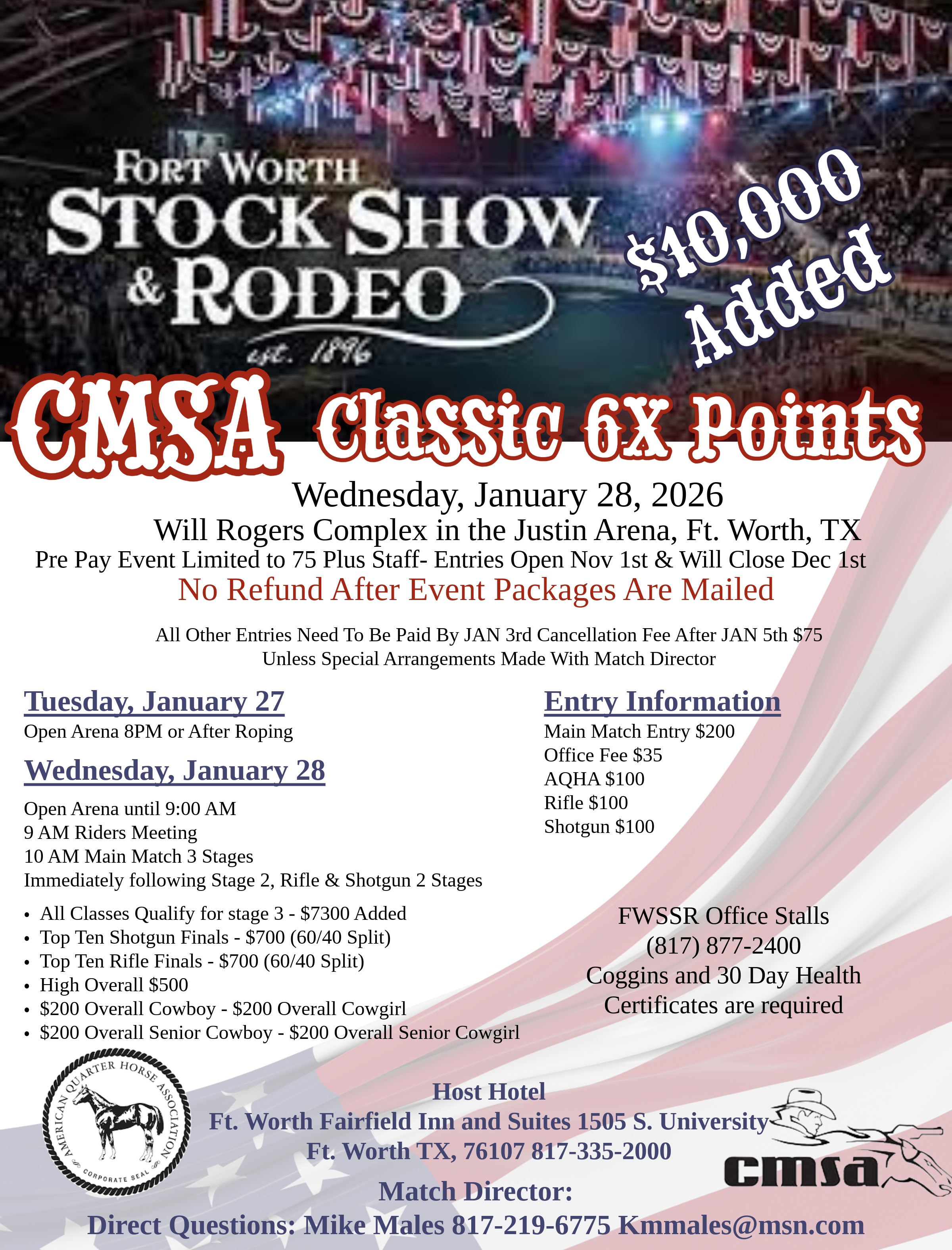 FORT WORTH STOCK SHOW & RODEO CLASSIC SHOOT ( 6 X POINTS ) $10,000 Added Money